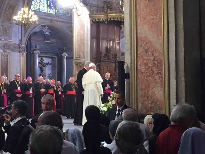 CON GRAN ALEGRÍA FUE ESPERADO EL SANTO PADRE FRANCISCO EN LA IGLESIA CATEDRAL
